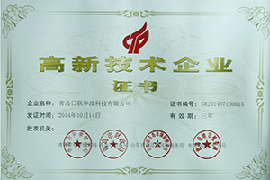 青島日聯華波科技有限公司獲得青島市科學技術局、青島市財政局、山東省青島市國家稅務局、青島市地方稅務局聯合頒發的高新技術企業證書;