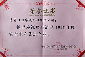 青島日聯華波科技有限公司獲得青島市紅島經濟區二〇一五年度安全生產先進企業稱號;