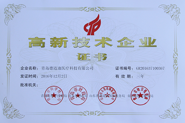 青島德邁迪醫療科技有限公司獲得青島市科學技術局&青島市財政局&山東省青島市國家稅務局&青島市地方稅務局高新技術企業證書;