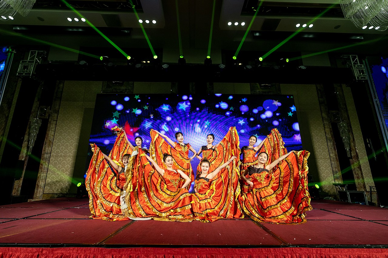 上午11:55分,五彩繽紛的燈光秀拉開了午宴大幕。由牧野模具基層員工表演的電光舞在午宴一開場就為大家呈現了一場視覺盛宴。